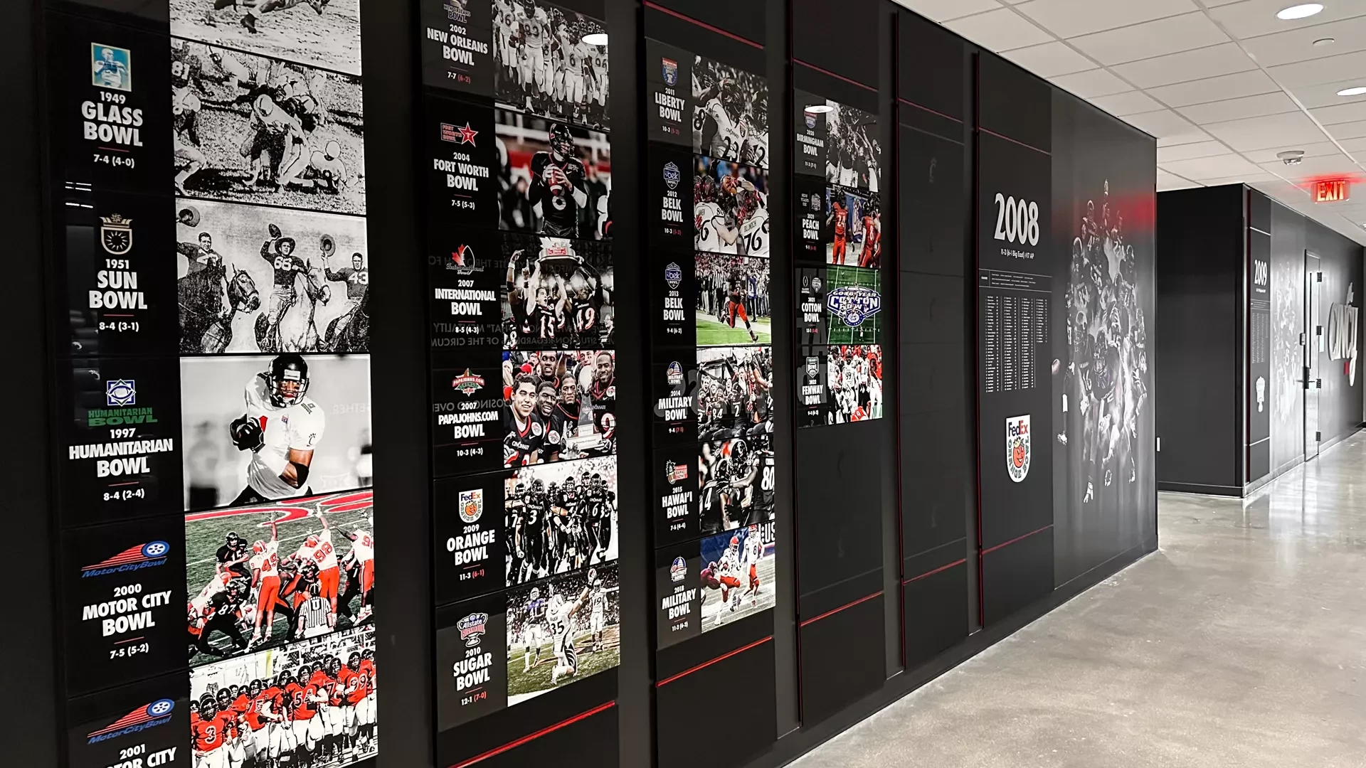 At 49 Degrees, I designed environmental graphics, custom signage, and branded visuals that turn college athletics spaces into next-level experiences. I worked on projects for top D1 programs—crafting wall coverings, wayfinding systems, locker rooms, player lounges, and halls of fame. I brought energy to my team, helping infuse school spirit and modern trends into designs that modivate athletes and fans.